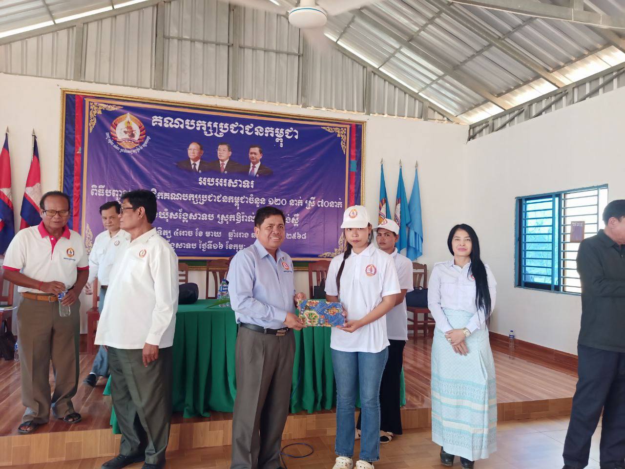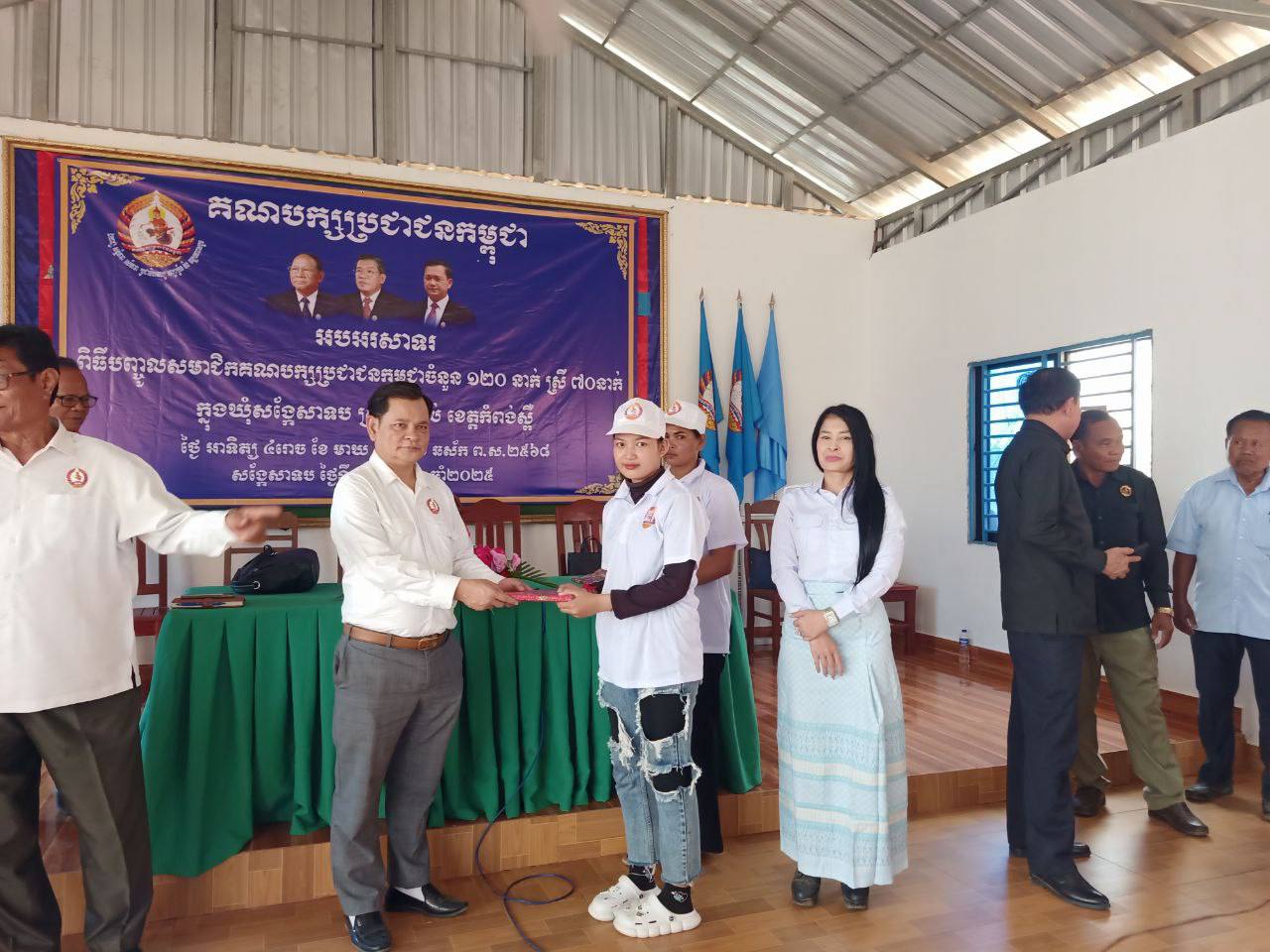 ✍ឯកឧត្តម ប៊ិន ត្រឈៃ សមាជិកគណៈកម្មាធិការកណ្តាលគណបក្សប្រជាជនកម្ពុជា, អនុប្រធានក្រុមការងារគណបក្សចុះមូលដ្ឋានខេត្តកំពង់ស្ពឺ និងជាប្រធានក្រុមការងារគណបក្សចុះមូលដ្ឋានស្រុកឱរ៉ាល់ បានផ្តល់កិត្តិយសដ៏ខ្ពង់ខ្ពស់ជាអធិបតី ក្នុងពិធីបញ្ចូលសមាជិកថ្មីចំនួន ១២០នាក(ស្ត្រី ៧០នាក់) នាថ្ងៃទី១៦ កុម្ភៈ ឆ្នាំ២០២៥ វេលាម៉ោង ១៤:០០នាទីរសៀល នៅទីស្នាក់ការគណបក្សឃុំសង្កែសាទប ស្រុកឱរ៉ាល់ ដែលមានការអញ្ជើចូលរួមពីសំណាក់ ៖